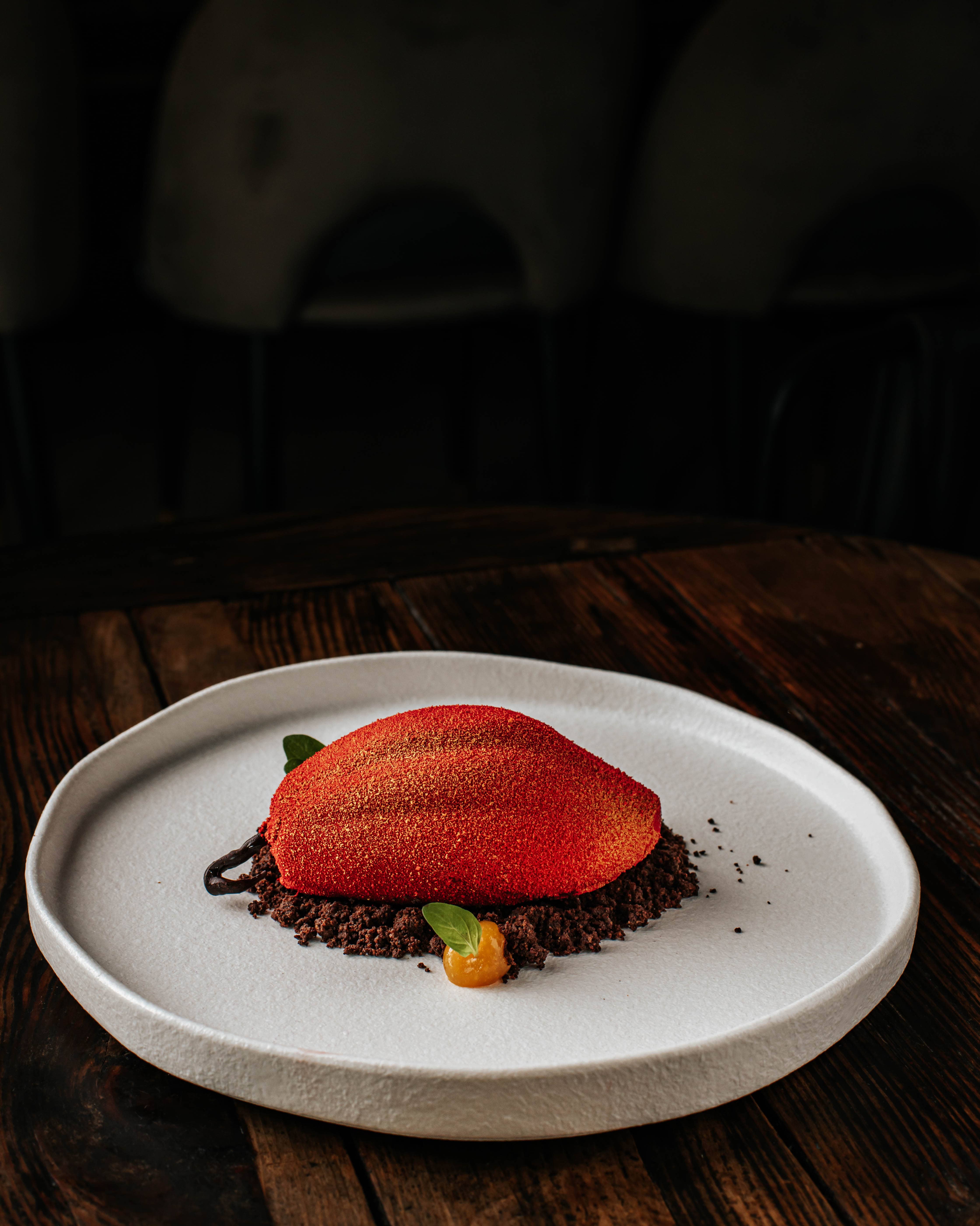 Venezuelan chocolate, milk chocolate mousse, passionfruit gel, chocolate cake.