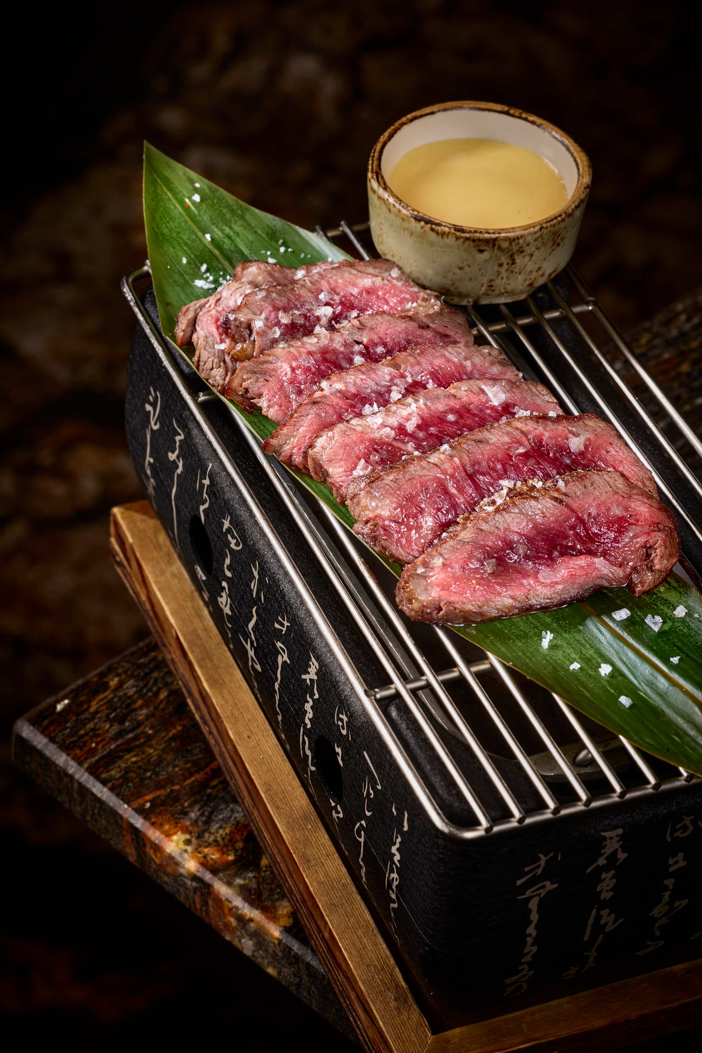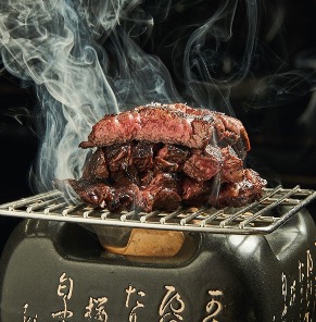 Black Angus skirt steak grilled on the robata.