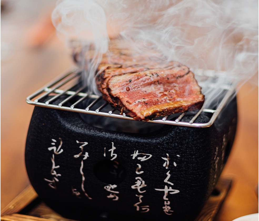 Sirloin steak robata served over sauteed mushrooms accompanied with Yuzu hollandaise.