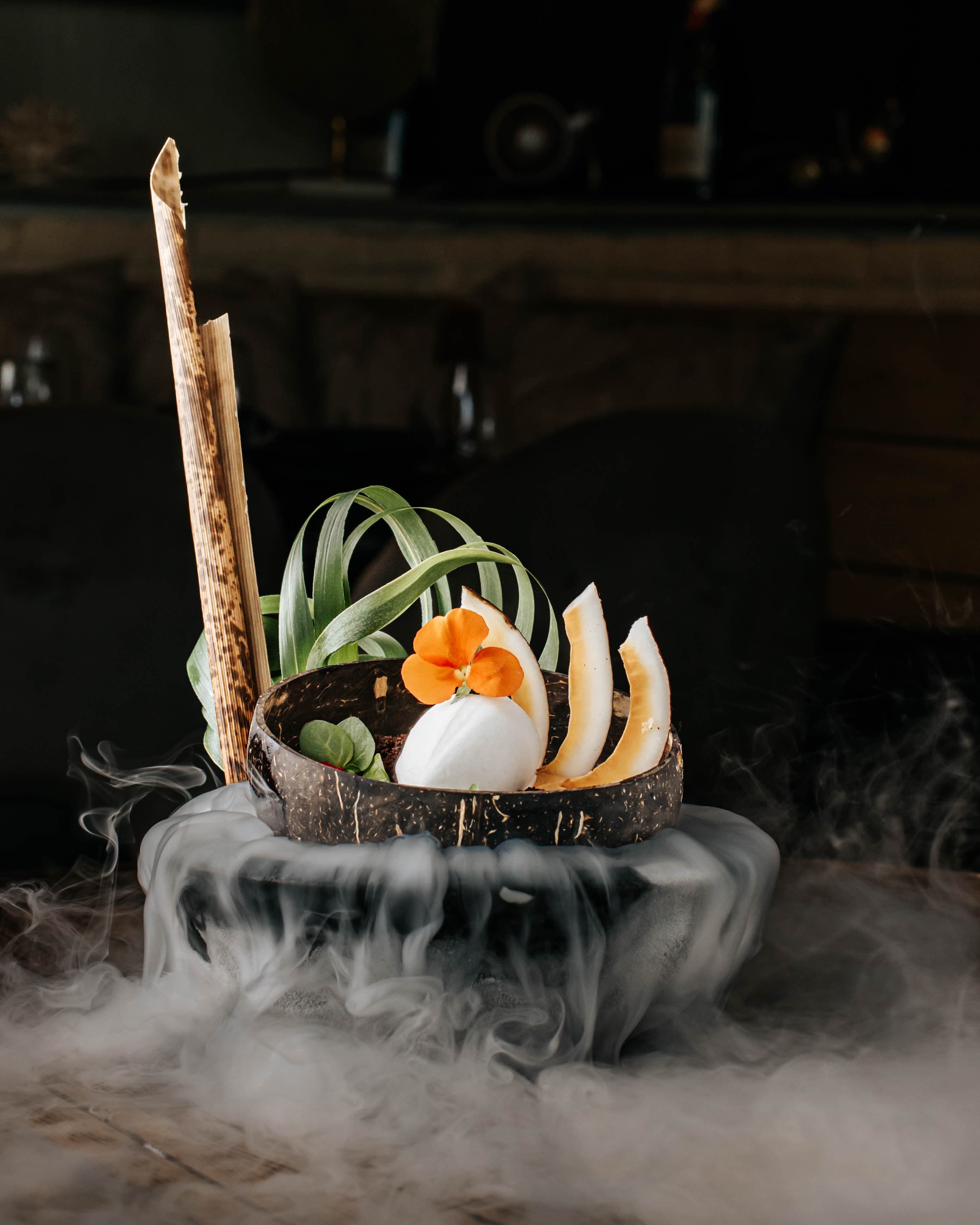 Diplomático Mantuano Rum, Citrus, Grilled Pineapple, Sesame, Passion Fruit Foam.